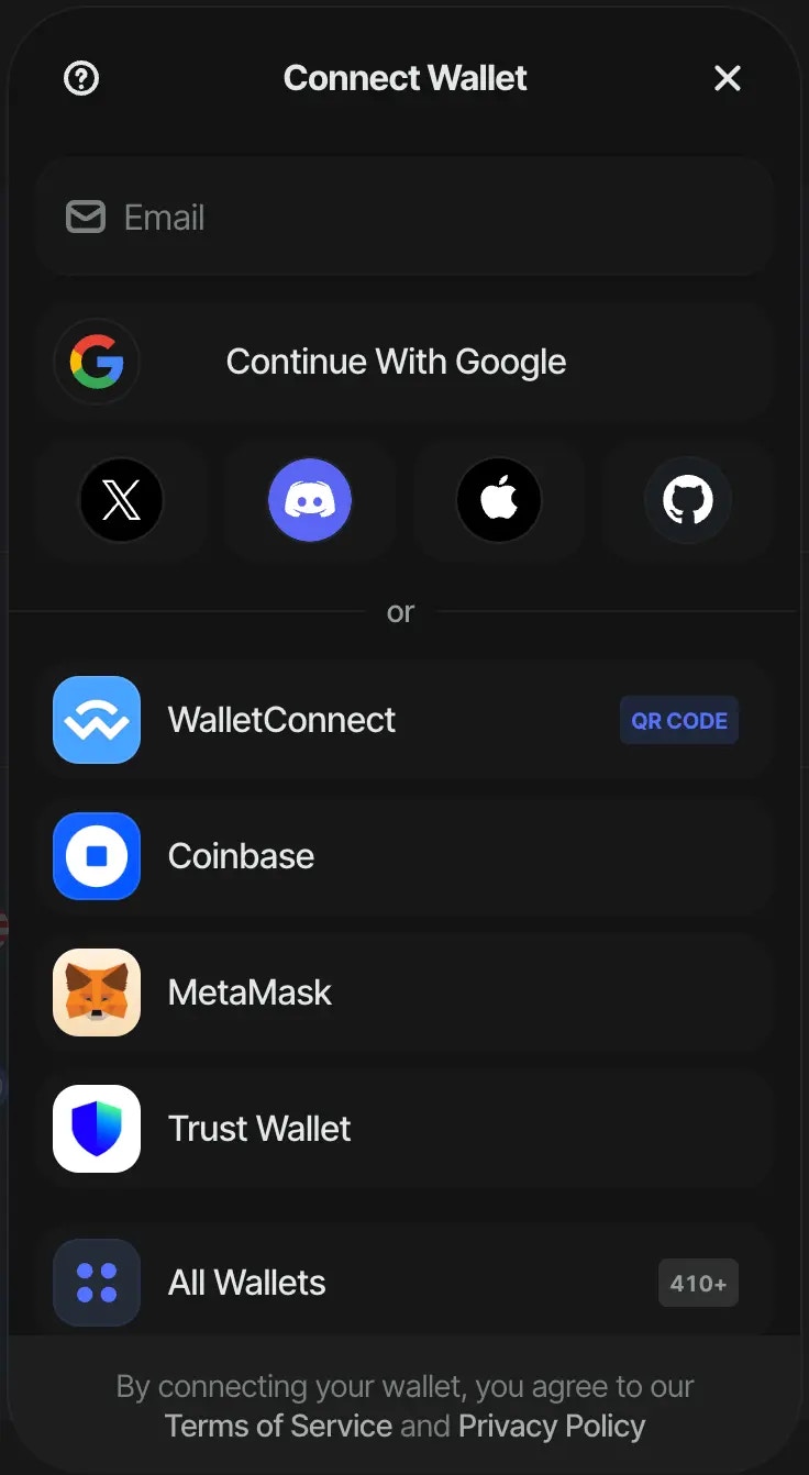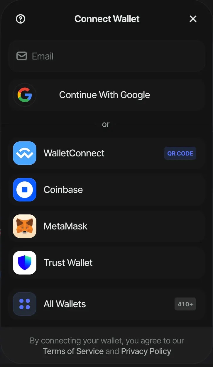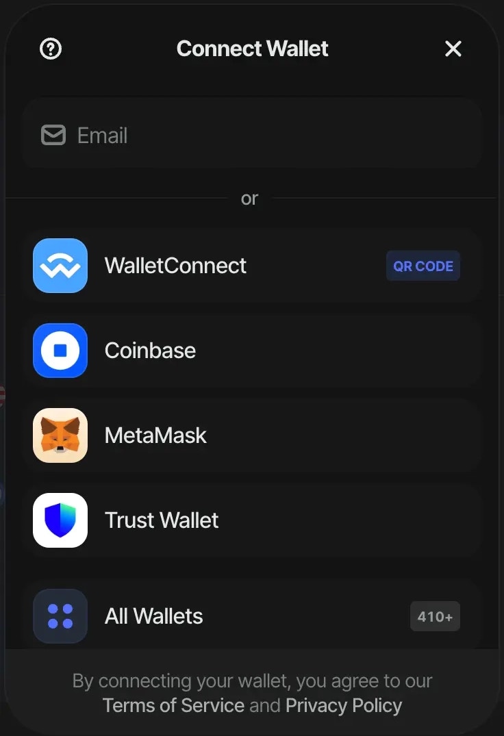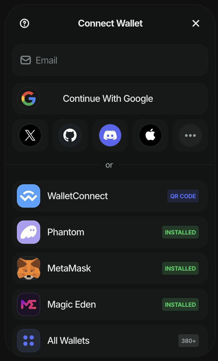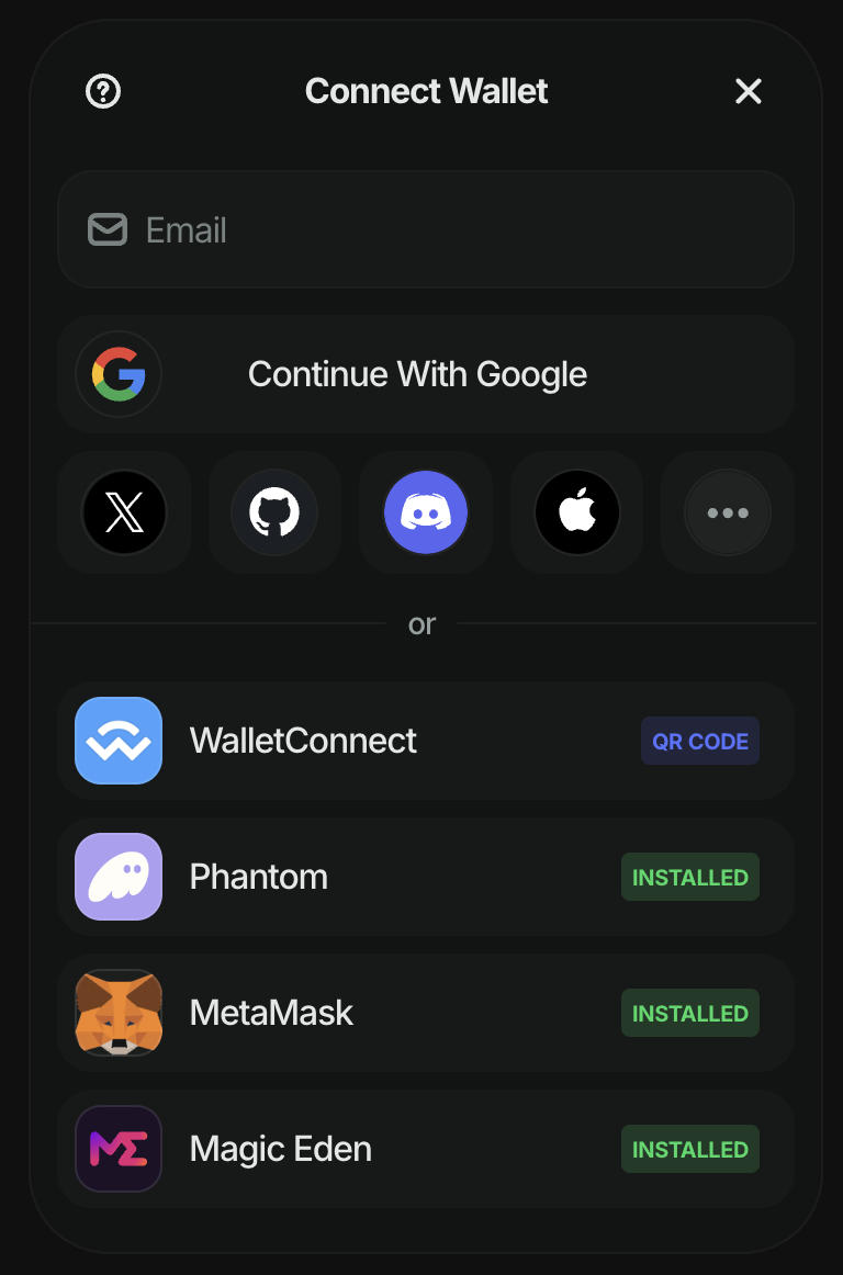 • emailShowWallets: true: When this option is enabled, the initial connect screen will display the available wallet options directly to the user. This allows users to choose their preferred wallet immediately.